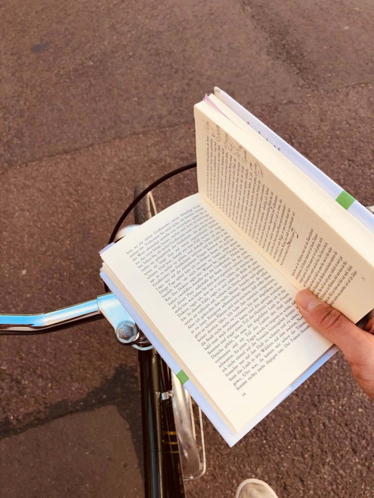 „Mit der vollen Geschwindigkeit eines Fahrrads leben“, empfiehlt der Lehrer Saul dem Schüler „Soundso“. Mit Mut ein Wort in die noch wortlose Welt schreien, denke ich fahrend und lesend. Darum könnte es gehen.
